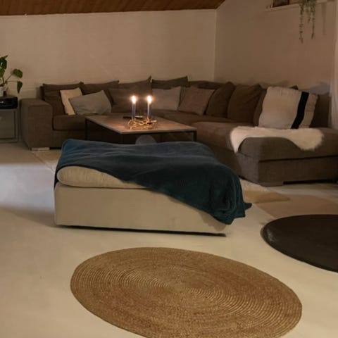 Grå hjørnesofa fra Skeidar selges grunnet at sofaen ikke passer inn i layouten i stuen etter utbygging. Den er 6år, litt nuppete, men fin i fasongen.