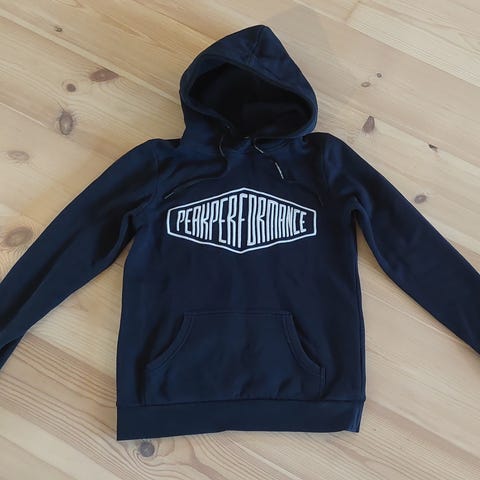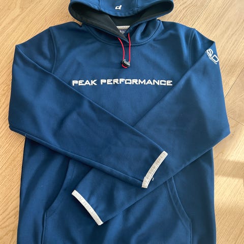 Pent brukt hettegenser fra Peak Performance til barn, størrelse Large. Marineblå farge med praktisk glidelås og hette. Myk, komfortabel og perfekt til skole, fritid eller trening.