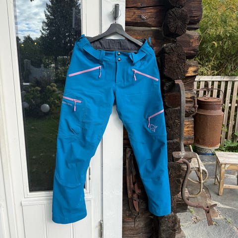 Mørk grå turbukse fra Norrøna, med rosa detaljer, perfekt til tur. Pent brukt