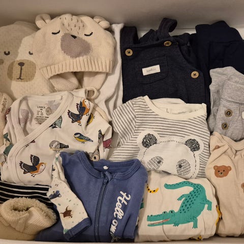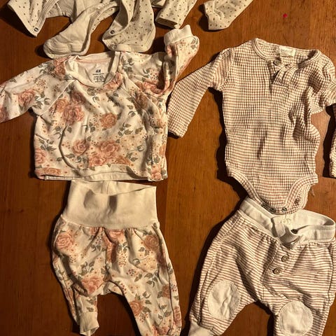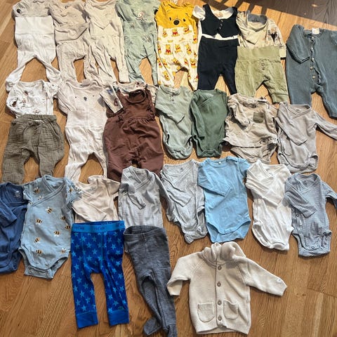 Selger en pent brukt klespakke i størrelse 56. Inneholder klær fra Name it, Adidas, Lindex, HM, Lil'Atelier, samt to tynne luer fra Newbie (en av de med snøring). Pakken inneholder: