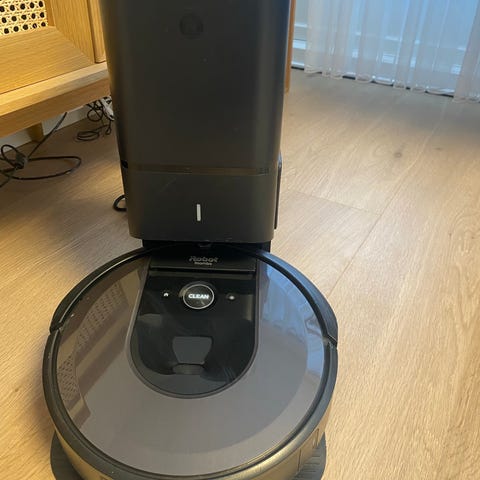 iRobot Roomba j7+ robotstøvsuger med automatisk tømmefunksjon. En robotstøvsuger designet for å rengjøre gulv automatisk, med mulighet for selvstendig tømming av støvbeholder i dokkingstasjonen.