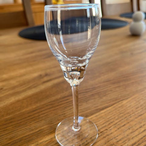 Blåst krystallglass med en karakteristisk boble i stetten.