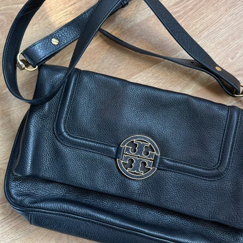 Valentino lær veske for dame. Vesken har en skulderrem med kjededetaljer og en klaff med dekorativt V-merke og dusk. Den har flere rom og glidelåslommer for organisering av eiendeler.