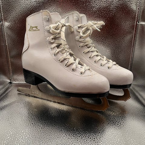 Søkeord: Skøyter, kunstløpsskøyter, is-skøyter, barneskøyter, skøyter barn, Davos skøyter, hvite skøyter, kunstløp barn, fritidsskøyter, vintersport, vinterutstyr, brukt skøyteutstyr, rimelige skøyter, klassiske skøyter, ice skates, figure skates, kids ice skates, junior figure skates, Davos ice skates, recreational ice skating, winter sports gear, used ice skates, affordable skates