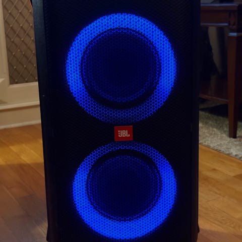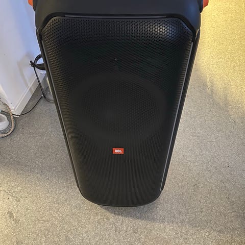 En pent brukt JBL partybox 300 selges grunnet lite bruk. Det er noen få synlig bruksmerker men ikke noe som påvirker høyttaleren. Alt testet og fungerer som det skal.