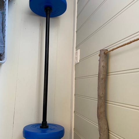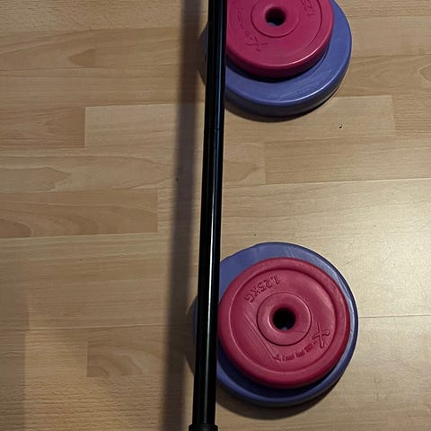 Ziko vektstang med tilhørende vektskiver på totalt 20 kg. Vektskivene er i blå og lilla farge. Vektstangen er egnet for styrketrening og vektløfting.