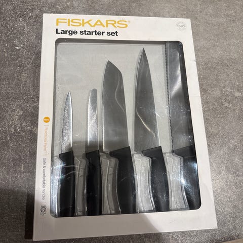 3 Fiskars og IKEA kjøkkenkniver med svart skaft selges billig! 100kr til sammen. De er et par år gamle, men er pent brukt og har ingen skader.