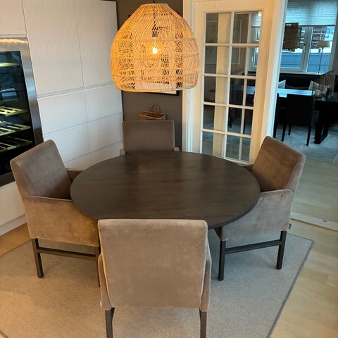 Halvor Bakke spisestue bord fra Bohus. Lite bruksmerker som kan oljes bort ved vedlikehold. To ileggsplater på 50 x 100 følger med. Pris 8000,-