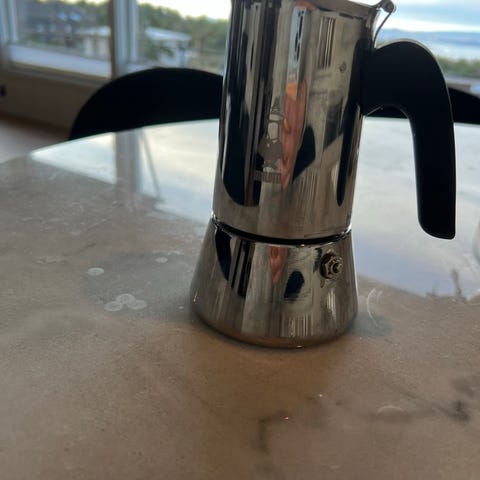 Liten mokkakanne. Ren og pen. Pakningen er fortsatt bra. Dette er den minste typen som brygger 3 kopper i følge produsenten, men greit å vite at det er relativt små kopper.