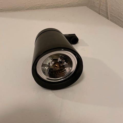 Selger 2 stk originale ERCO spotlamper. Klassisk retro “eyeball/kule”-design med justerbar retning.