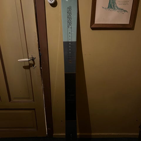 Etter én sesong med disse flotte skiene har jeg valgt å gå over til telemarkski. Skiene er brukt i ca. 1,5 sesong (i fjor og i år) og er i god stand.