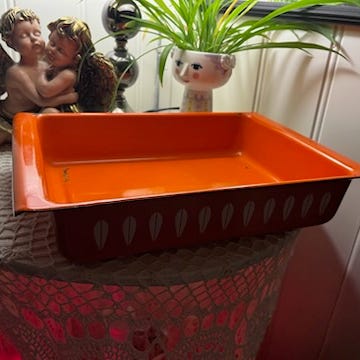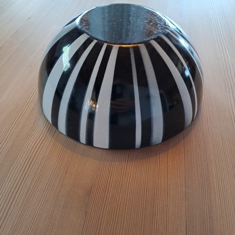 Gult Lotusfat fra Cathrineholm. Ø 26 cm. I god stand, et lite kakk på kanten.