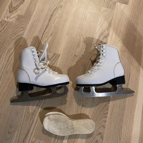 Barneskøyter i størrelse 33, hvit farge. Egnet for barn og til bruk innen skøytesport.