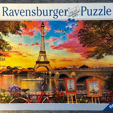 Ravensburger puslespill 1000 brikker. Puslespillet heter «Paris in the dawn». Brukt en gang, så er som nytt.