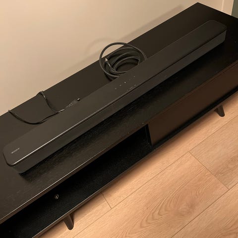 Sony DTS og Dolby digital 2.1 lydplanke med subwoofer og fjernkontroll.