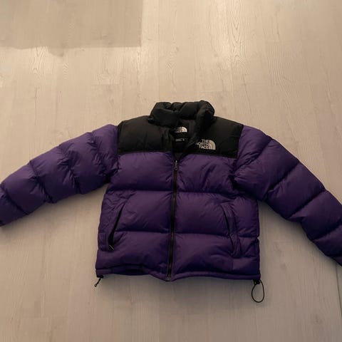 Selger en stilren og varm vinterjakke fra The North Face i offwhite/beige farge. Jakken er i størrelse M (herre) og har klassisk TNF-design med logo på brystet. Den er godt isolert og passer perfekt til kaldt vinterføre.