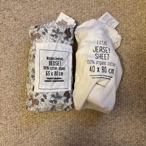 • Laken med strikk i ulike størrelser – passer til babyseng eller barnevogn
