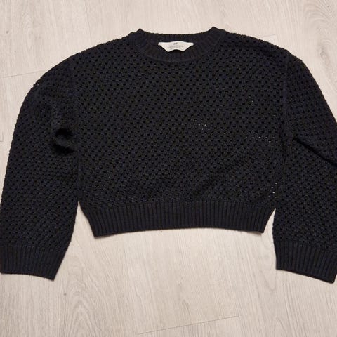 Genser fra HM i str 146/152 i lys rosa. Genseren er rosa og laget av akrylmateriale. Den har et mønsterstrikket design på forsiden og ribbestrikkede kanter ved ermer og nederkant.