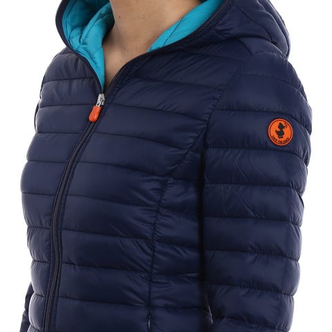 Jakken kan brukes på begge sider. Mørk blå på en side og lys blå på andre siden.