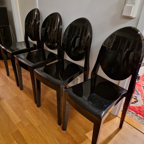 Har 4 pent brukte Kartell Victoria Ghost stoler som selges kr 1000,- pr stk.
