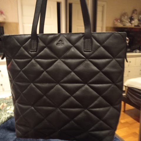Liten skulderveske med plass til det meste essensielle: mobil, Lipgloss og nøkler og en liten lommebok.