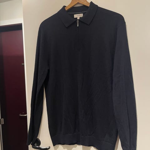 Reiss half Zip genser blå merinoull herre M