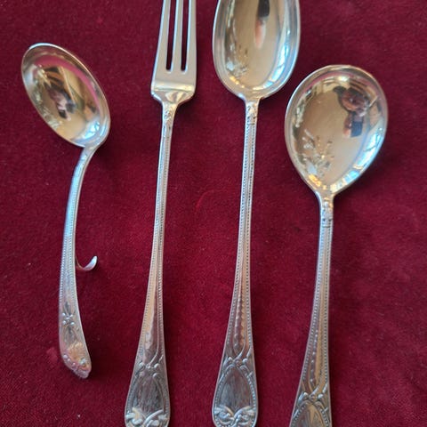 Selger et meget pent og velholdt sølvbestikk i det klassiske mønsteret Sonja, designet i 1965. Dette er et tidløst og populært norsk mønster produsert av Theodor Olsens Eftf. (nå Arven) i Bergen.