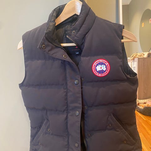 Canada Goose vest i navy farge, størrelse XL for dame. Laget av polyester materiale. Egnet som ytterplagg for utendørs bruk.