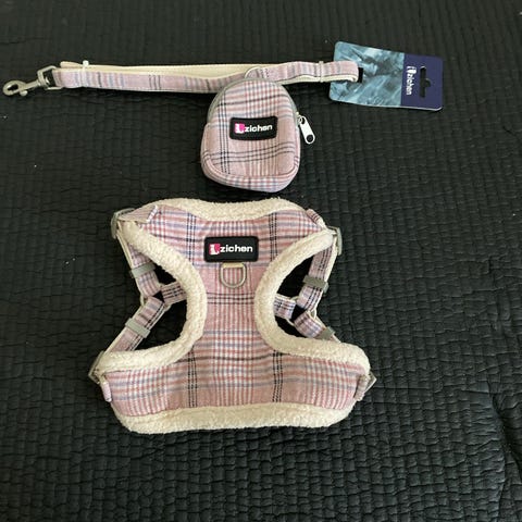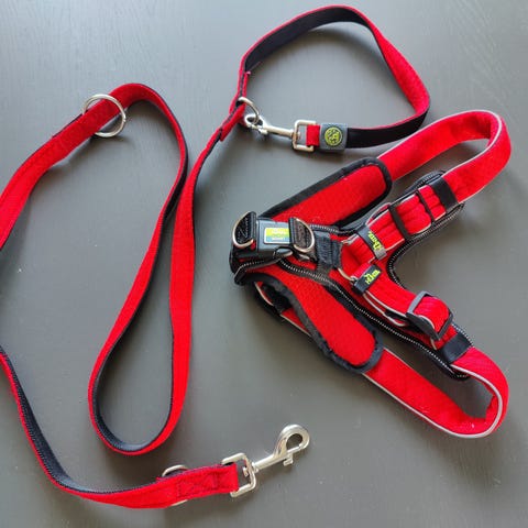 Hundesele, leiebånd og bæsjeposeholder i størrelse M, fra Kasper og Lucas design!Settet er pent brukt!