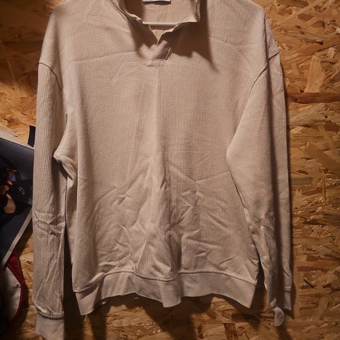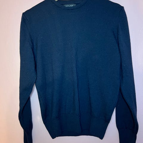 Zara ullgenser i beige farge, størrelse S for herre. Genseren er laget av ullblanding og har rund hals.