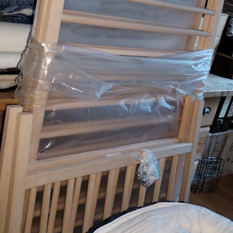 Brukt sprinkelseng med skuffer. Den ene skuffen er litt løs, men virker bra. Madrass og sprinkelbeskytter medfølger. Må hentes.