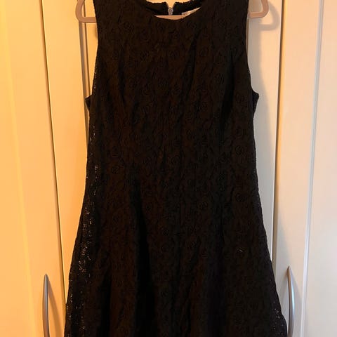Mango festkjole i størrelse L, svart farge, laget av bomull. Kjolen har et mønster i blonder og er designet for kvinner.Grå kjole fra Zara. Polyester