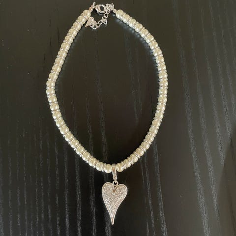 Vakkert smykke med perler og hjerte. Utsrbeidet i kvalitetsbelgt metall . Nikkelfritt.