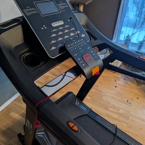 Horizon T202 tredemølle med digitalt kontrollpanel, flere treningsprogrammer og justerbar hastighet. Utstyrt med håndpulssensorer og skjerm for visning av tid, distanse, hastighet og kaloriforbruk. Passer for hjemmebruk til kondisjonstrening.
