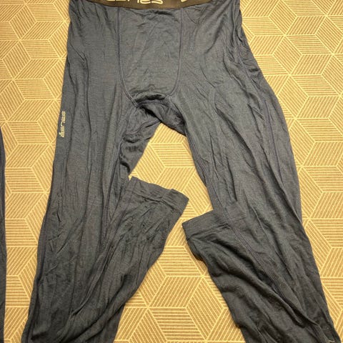 Pent og lite brukt ullsett, genser og longs i ren ull. Myk, varm og behagelig å ha på. Farge marineblå og offwhite. Størrelse M på begge, normal i størrelsen.