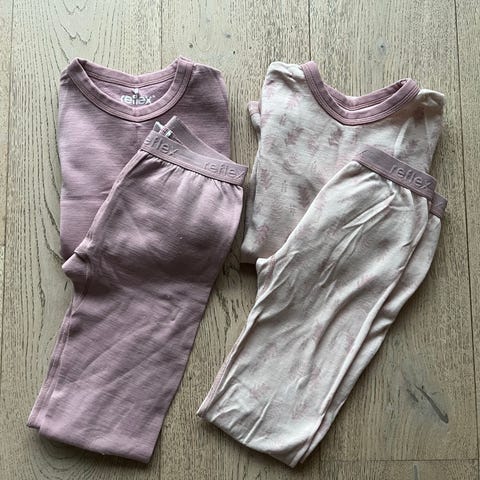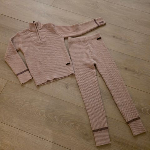 Rosa ullsett (trøye og stillongs) fra Reflex, størrelse 122-128. 100% merinoull.