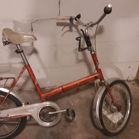 2 stl eldre sykler, den røde er komplett og i ganske bra stand, den grønne mangler div men ser grei ut, seriøse bud ønskes over kr 500