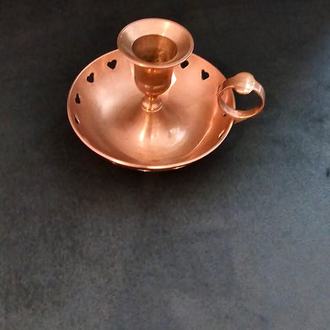 Gullfarget lysestake. Husker ikke hvor den er kjøpt, men tror det er søstrene grene eller noe liknende.