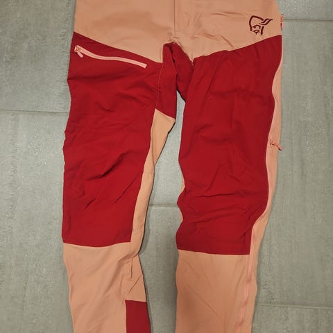 Norrøna Fottur bukse for damer i størrelse M. Buksen er blå med svarte forsterkninger på knær og bakside. Designet for fottur med slitesterkt materiale og god passform.