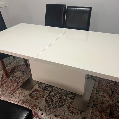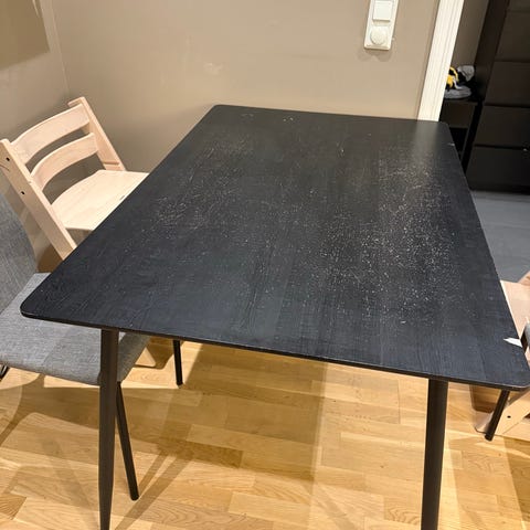 Pent og liten brukt bord gies bort mot rask henting må hentes på Skjetten. Mål. 73 høyde. 59 lengde uten platene. 117 Lengde med platene. Bredde 78