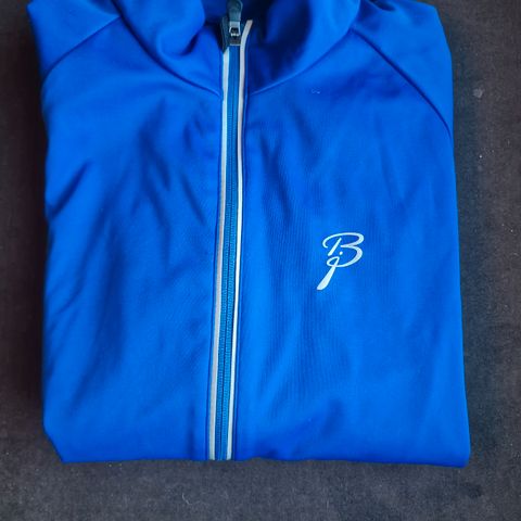 Dæhlie jakke for herre i størrelse L. Jakken har blå farger og er laget for utendørs bruk. Den har to glidelåslommer. Materialet er egnet for aktivitet i kaldt vær. Lite hull på ene ermet, men lite betydningsfullt for funksjon.