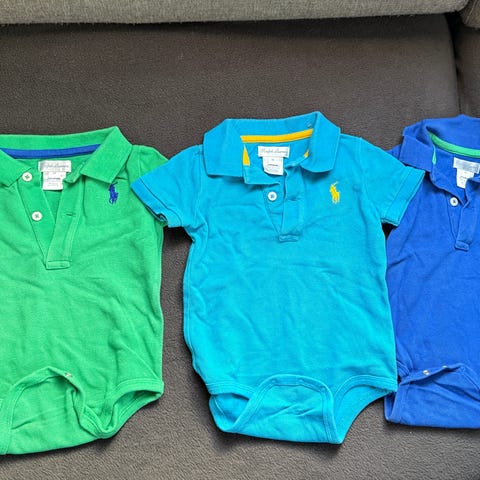 Den beige/hvite er str 98/104, men er brukt til str 104/110. Den rosa er 122/128, men er brukt til 128/134.