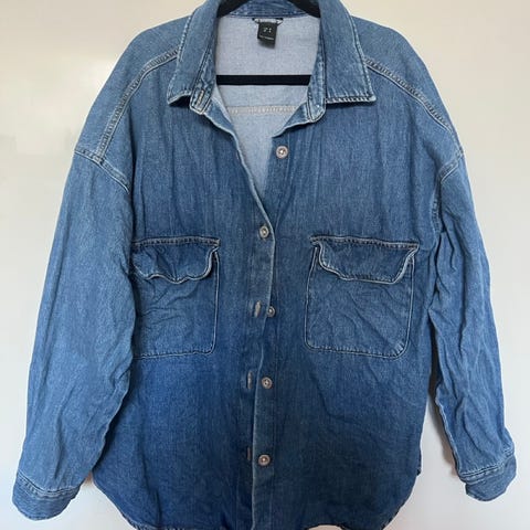 Lindex Detroit denimjakke i blå farge, størrelse M for dame. Jakken er laget av denimmateriale og tilhører kategorien andre jakker.