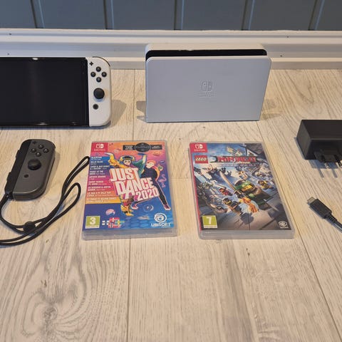 Hentes Asker / Oslo Nintendo Switch OLED m 2 spill, reiseveske, pro kontroller
