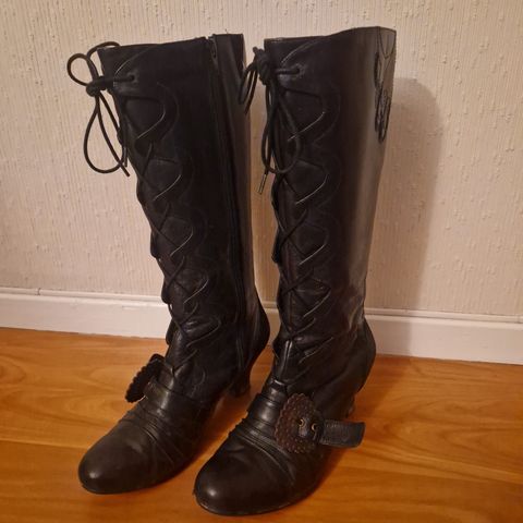 En del bruksmerker og riper på hælene. Ekte skinn.