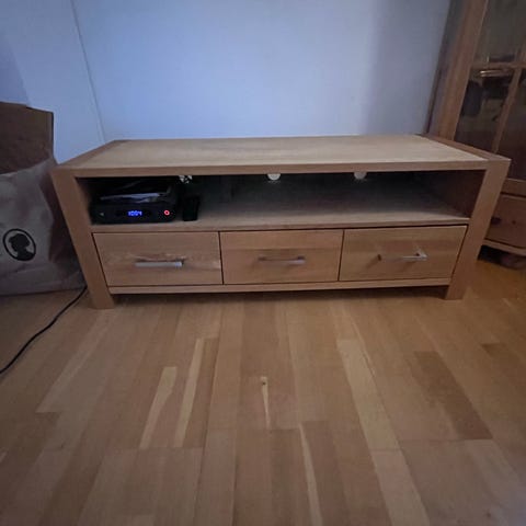 Svart TV-benk selges. Mangler en dør, se bilde