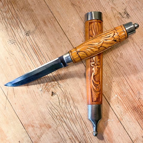 Veldig flott tradisjonell stas/Bunadskniv laget i Budal stil.Kniven er i utmerket stand.Flott til bunad eller som en flott samlerkniv.Alt er håndlaget på kniven.Selges kr 5000.Kan sendes