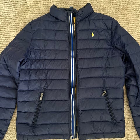 Pent brukt dunjakke i merket Polo Ralph Lauren til salgs i størrelse 14-16 år. Jakken er nesten ikke brukt og selges siden den er blitt for liten. Grå og sort