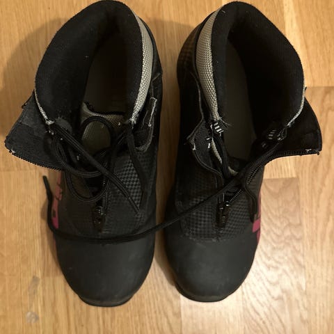 Godt brukte skisko i skinn. Har noen synlige bruksmerker, men er hele og har mye bruk igjen i seg. Størrelsesmerking er slitt bort, men de er i størrelse 33. Passet tidligere her, men synes det gjelder alle skisko.