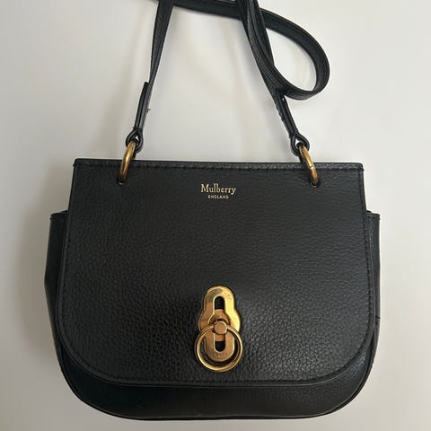 Den ikoniske Mulberry Bayswater small i svart myk skinn. Den har noen bruksmerker innvendig og utvendig (se bilder). Generelt er vesken i veldig god stand ifht alderen (ca 12 år). Kommer med dustbag. Kan bæres både over skulderen og i hånd. Det er plass til PC.